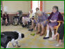 L'équipe de chiens visiteurs avaient été sollicitée par l'EHPAD de Montcenis pour faire une animation dans le cadre de la semaine bleue ce jeudi 19 octobre 2011. Cinq chiens ont pu participer : Banga et Buiguine, Roll, Asia et Eden grâce à Maurice, Elisabeth et Annie disponibles ce jourlà. Les résidents étaient nombreux autour de la salle, la visite était annoncée au tableau des animations du jour ! Tous ont pu caresser et parfois tenir sur leurs genoux, l'un de ces chiens visiteurs.Biguine, infatiguable pour demander qu'on lui lance un jouet, a eu des volontaires tout l'après-midi et de grands éclats de rires quand elle sautait en l'air ! L'animatrice aidant ceux qui voulait participer,sans en avoir la force. Les chiens sont repartis sous les" au-revoir de la main" de tous les résidents, et les remerciements du personnel, tous ravis de cette visite !